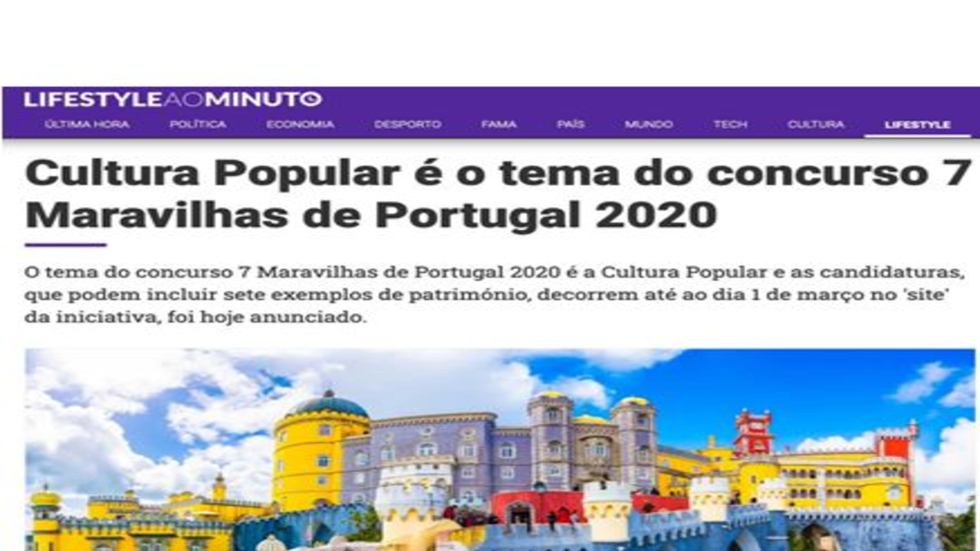Cultura Popular é o tema das 7 Maravilhas em 2020.